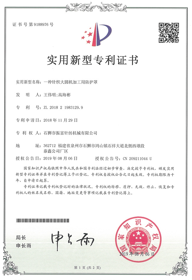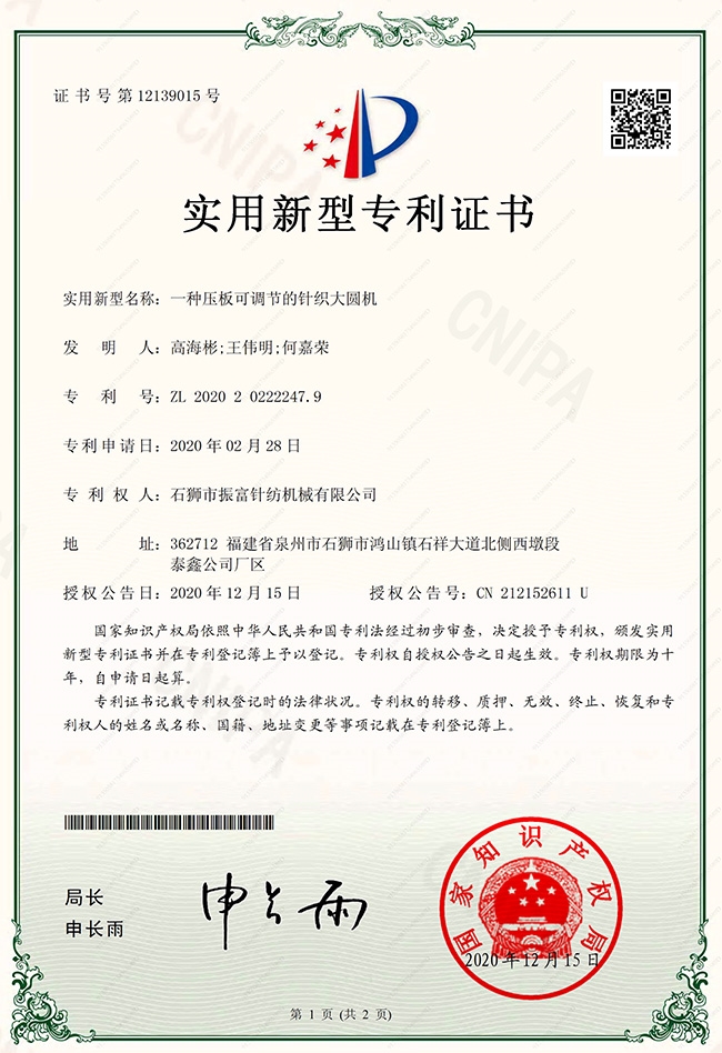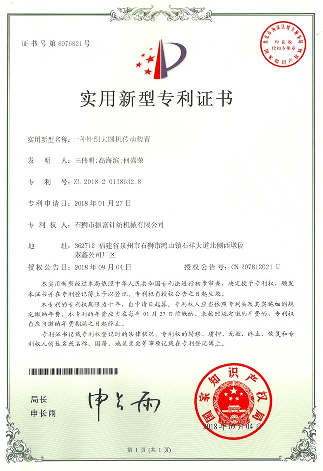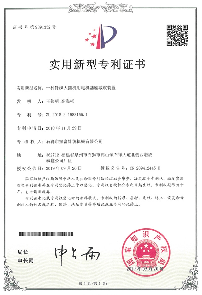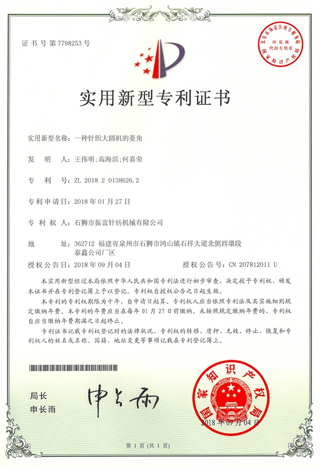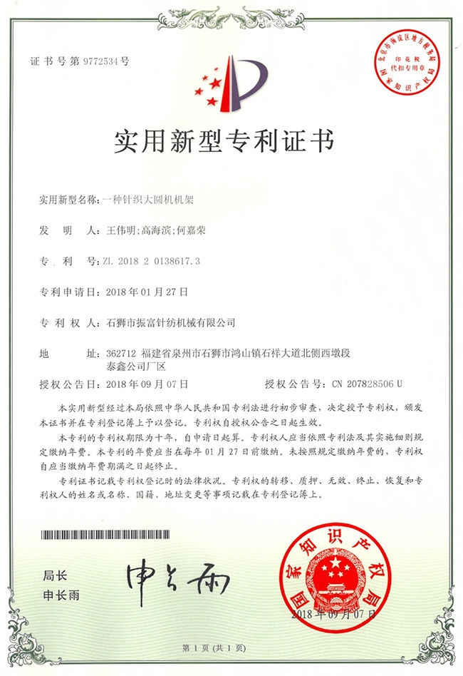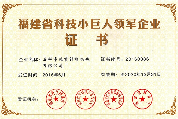 石獅市振富針紡機械有限公司成立於2003年11月03日ri,專zhuan業ye從cong事shi緯wei編bian針zhen織zhi大da圓yuan機ji設she計ji及ji製zhi造zao的de研yan發fa型xing公gong司si,企qi業ye具ju備bei雄xiong厚hou的de產chan品pin研yan發fa和he製zhi造zao能neng力li。自zi有you廠chang房fang並bing配pei備bei了le研yan發fa專zhuan用yong實shi驗yan室shi,每mei年nian研yan發fa投tou入ru數shu百bai萬wan元yuan,現xian有you發fa明ming專zhuan利li兩liang項xiang,實shi用yong新xin型xing專zhuan利li總zong計ji七qi十shi餘yu項xiang,真zhen正zheng實shi現xian研yan發fa與yu生sheng產chan相xiang結jie合he,將jiang技ji術shu成cheng果guo轉zhuan換huan並bing應ying用yong到dao實shi踐jian中zhong來lai;獲得“國家高新技術企業”、“科技小巨人領軍企業”、“省科技型中小企業”,“金牌設備供應商”等殊榮。