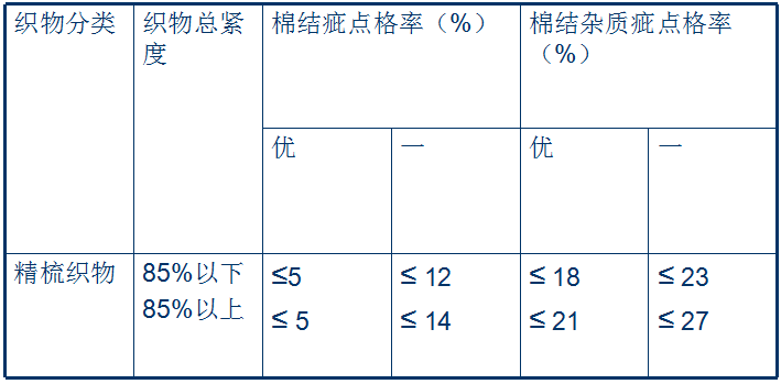 ●外觀質量檢驗包括棉結疵點格率、棉結雜質疵點格率、布麵疵點。