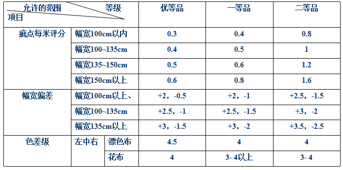 ●內在質量和外觀質量分別評等後,以最低的品等作為該匹布等級。