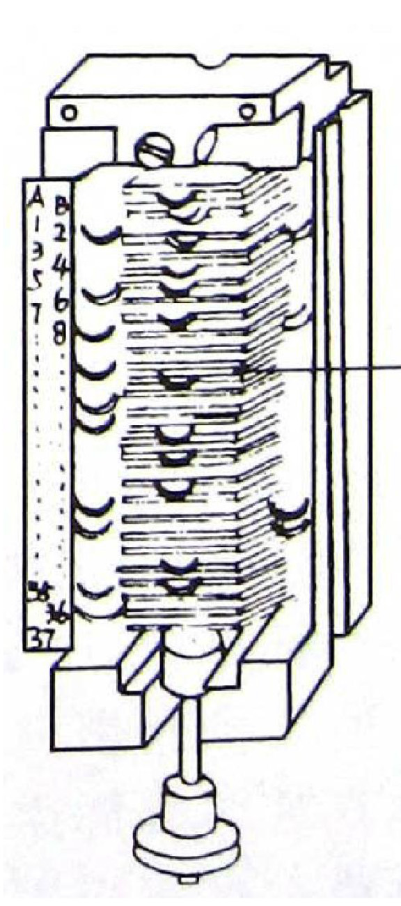 撥片式選針機構由發出選針花紋信息的選針元件投片、傳(chuan)遞(di)花(hua)紋(wen)信(xin)息(xi)的(de)機(ji)件(jian)提(ti)花(hua)片(pian)以(yi)及(ji)執(zhi)行(xing)花(hua)紋(wen)信(xin)息(xi)的(de)工(gong)作(zuo)機(ji)件(jian)織(zhi)針(zhen)組(zu)成(cheng)。一(yi)般(ban)來(lai)說(shuo),它(ta)屬(shu)二(er)級(ji)選(xuan)針(zhen)機(ji)構(gou),即(ji)編(bian)織(zhi)與(yu)不(bu)編(bian)織(zhi)。其(qi)工(gong)作(zuo)原(yuan)理(li)是(shi),花(hua)紋(wen)信(xin)息(xi)—撥片—提花片——織針編織或不編織。