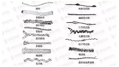 單紗、股線、單絲、複絲、膨體紗、變形紗、包芯紗、花式紗線、竹節紗、無撚紗、包纏紗等。