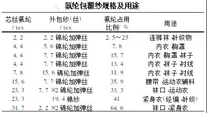 氨綸包覆紗是以氨綸絲為芯,以長絲或短纖維紗線按螺旋形的方式對伸長狀態的氨綸絲予以包覆而形成的彈力紗。
