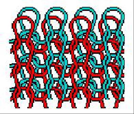 俗稱棉毛組織,由兩個羅紋組織彼此複合而成的雙麵緯編組織,在一個羅紋組織線圈縱行之間配置了另一個羅紋組織的線圈縱行。