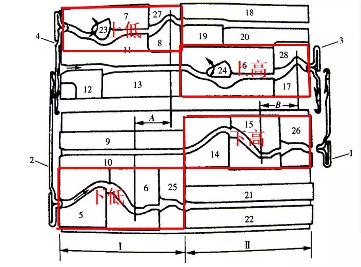 三角分為高低兩檔,對位:上高對下高,上低對下低。