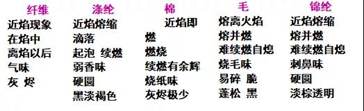③. 常見纖維的燃燒性質: