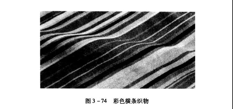 利用色紗交織或不同性能的紗線交織後染色而形成的色彩橫條效應。可采用基本組織或與花色組織結合,其性能與所采用的組織相同。