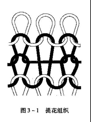 毛圈組織是由平針線圈和帶有拉長沉降弧的毛圈線圈組合而成。一般由兩根紗線編織。一根紗線編織地組織,另一根紗線編織帶有毛圈的線圈。毛圈組織可分為普通毛圈組織和花色毛圈組織兩類,同時還有單麵和雙麵之分。在普通毛圈組織中,每一隻毛圈線圈的沉陣弧都形成毛圈而在花色毛圈組織中,毛圈是按照圖案花紋,僅在一部分線圈中形成。單麵毛圈組織僅在織物工藝反麵形成毛圈,而雙麵毛圈組織則在織物的正反麵都形成毛圈。