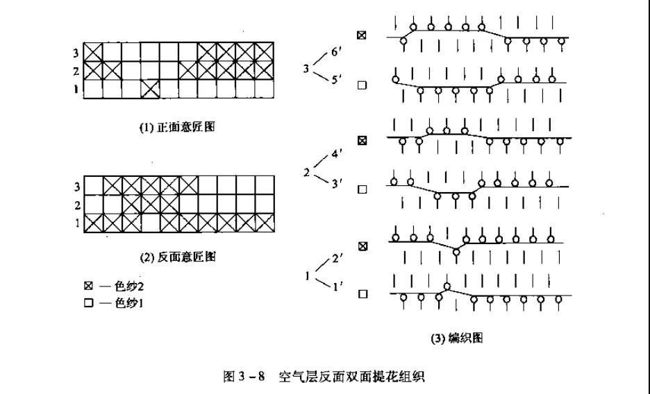 複合組織是由兩種或兩種以上的織物組織複合而成。它可以由不同的基本組織、不同的變化組織、不同的花色組織複合而成。複合組織可以根據各種組織的特性複合成所要求的組織結構。羅紋組織與平針組織複合成羅紋空氣層組織,雙羅紋組織和平針組織複合而成雙羅紋空氣層組織。這類組織的織物緊密厚實,彈性好,保暖性好橫向延伸性較小,尺寸穩定性較好。若空氣層組織外層采用棉紗編織,內襯高彈絲,是保暖內衣的極好麵料;若正反麵采用不同類型的紗線編織,則尤其適合用作外衣麵科。