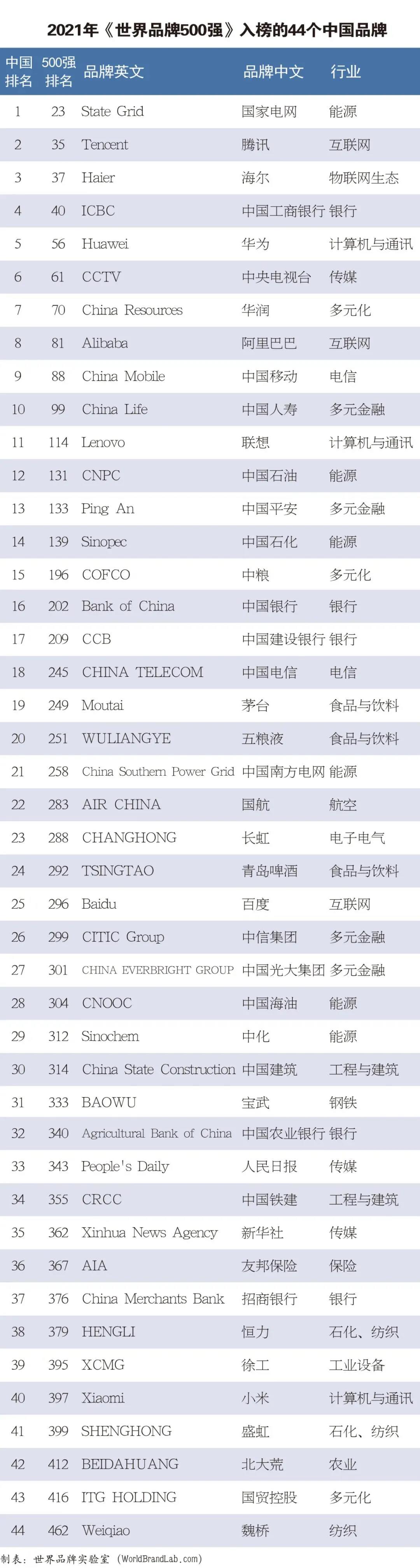 由世界品牌實驗室(World Brand Lab)獨家編製的2021年度(第十八屆)《世界品牌500強》排行榜於近日在美國紐約揭曉。