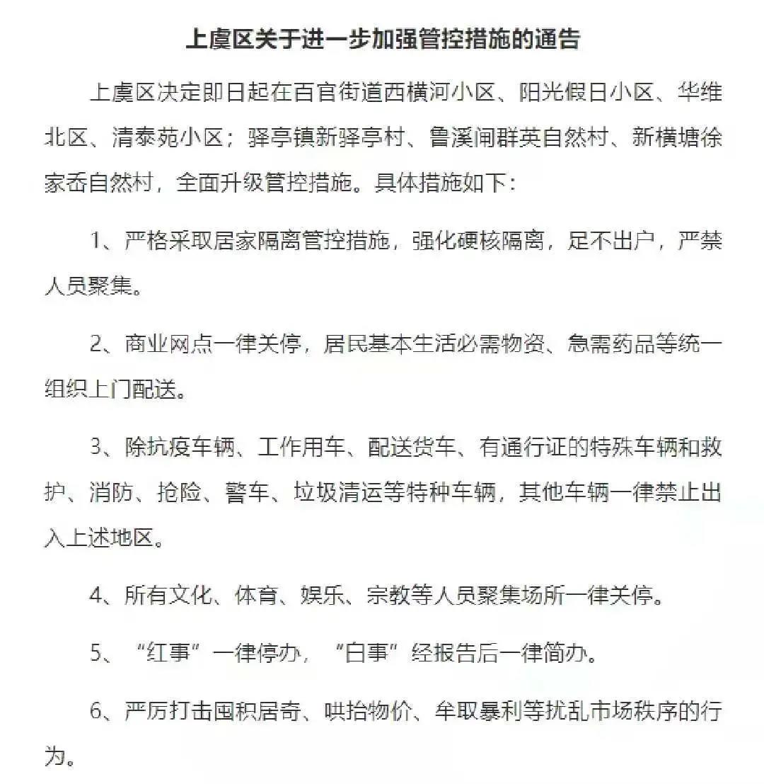 上虞發布要求:從2021年12月9日下午2時起,對上虞全區加強管控管理措施。