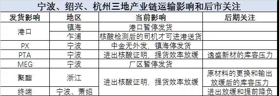 浙江防控升級的地區多為化工集中區域,彙集紡織原料生產、下遊聚酯消費、包括芳烴產業、聚烯烴產業、還有危化品生產等deng。其qi中zhong,鎮zhen海hai地di區qu作zuo為wei國guo內nei重zhong要yao的de石shi化hua基ji地di,其qi管guan控kong升sheng級ji對dui部bu分fen化hua工gong品pin的de影ying響xiang較jiao大da,具ju體ti受shou影ying響xiang程cheng度du還hai得de看kan這zhe波bo影ying響xiang影ying響xiang的de供gong應ying變bian動dong情qing況kuang。