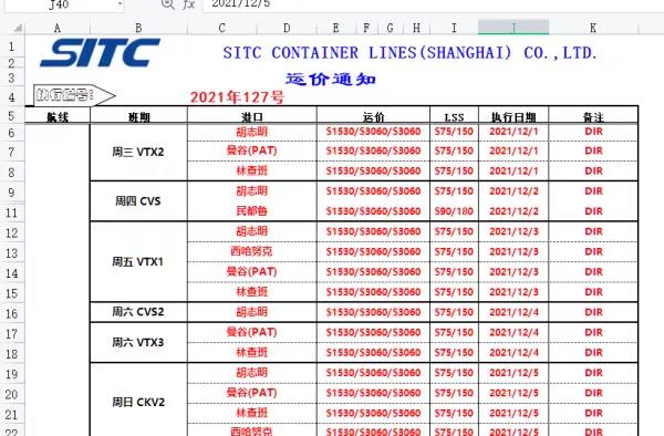以華南到胡誌明港為例,從十月底到十二月初,前後一個月時間,一個40尺集裝箱海運費就從500美金左右暴漲到了2000至2500美金,最高漲幅高達5倍。目前從船公司拿到的一手運價中,國內到東南亞國家航運價格上漲了500至1000美元不等,與前兩周相比漲幅達80%至200%不等,其中20GP/40GP/40HQ櫃子運價分別為1530美元、3060美元、3060美元。要知道,疫情前東南亞的運費僅有200-300美元左右。
