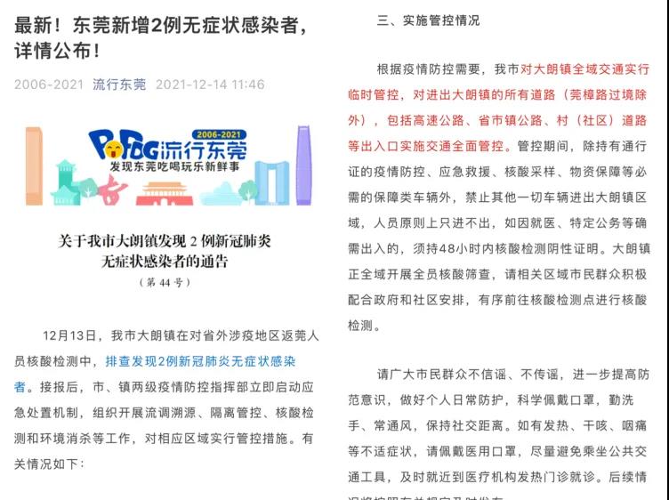 浙江疫情未止,廣東東莞當地疫情,14 日,東莞市舉行新冠肺炎疫情防控新聞發布會,通報大朗鎮排查發現的2例新冠肺炎無症狀感染者情況。