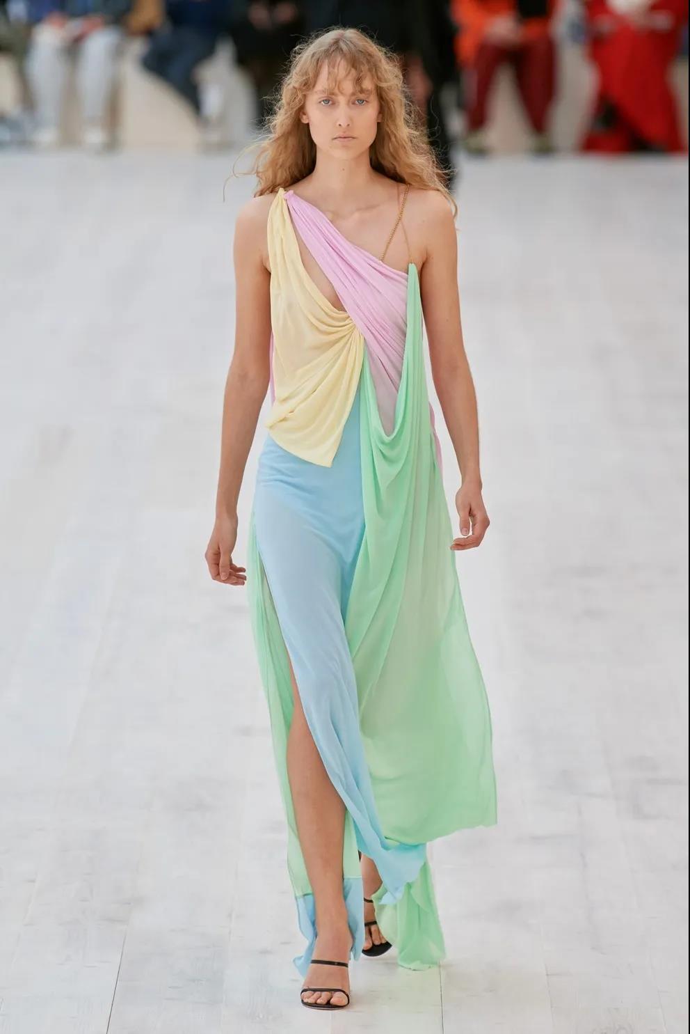 本季的主要趨勢之一是薰衣草。Jil Sander、Loewe、Givenchy 和 Jonathan Simkhai 隻是在其係列中使用它的幾個品牌。薰衣草色的外套和連衣裙、針織毛衣和針織套裝。下一季仔細研究柔和的顏色,其中還包括薰衣草。這種柔和的紫色色調最好與藍色、淡黃色和綠色混合,就像在 Loewe 和 Rodarte 係列中一樣。