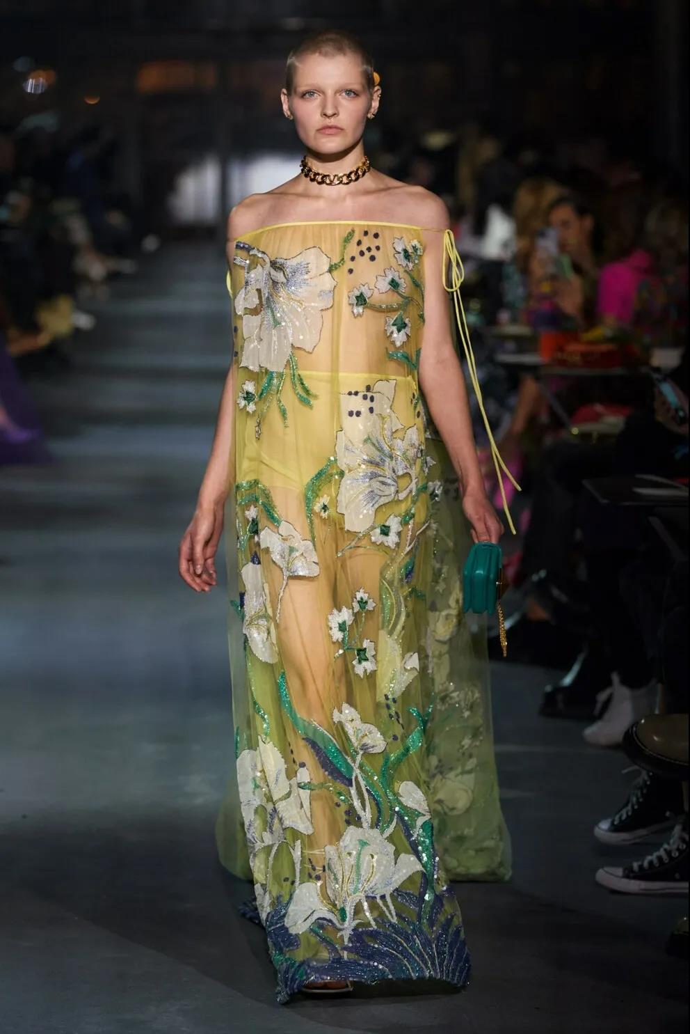 半透明的“裸”裙也許是明年春天最熱門的趨勢。麵料再次在視覺感知中發揮決定性作用。Alberta Ferretti、Fashion East、Givenchy 和 Valentino 的造型就是證明。