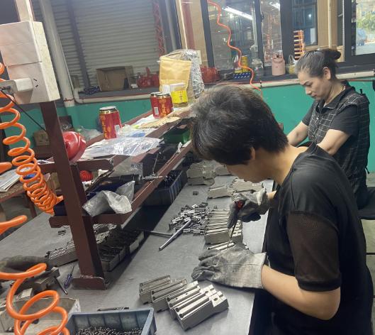 女工們伏案工作,耐心、細心挑選配件,上好每一顆螺絲,工作無巨細,處處是責任。