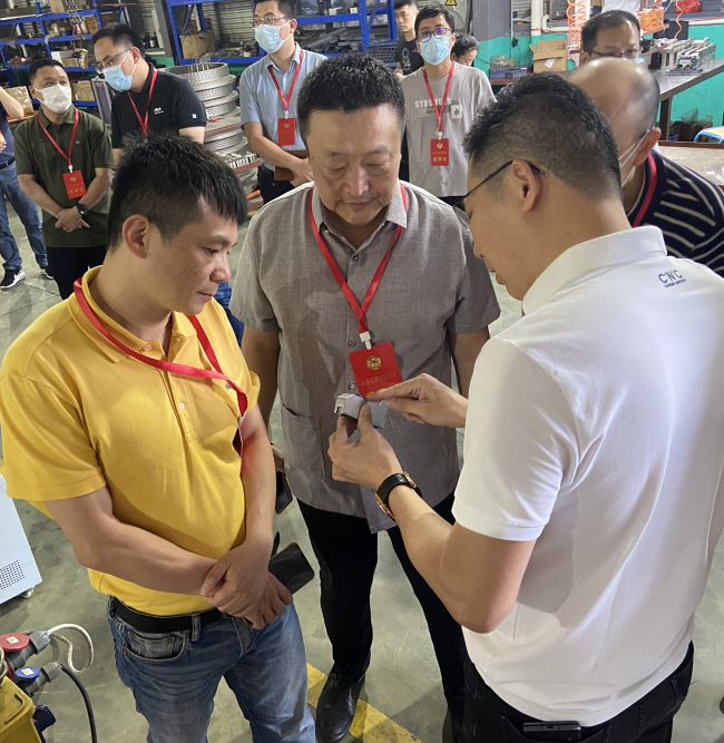 2023年6月15日石獅市政協領導朱賢、市政協部分常委、委員、市政協經濟資源辦公室工作人員等一行人蒞臨石獅市振富針紡機械有限公司就關於開展“智能製造產業發展”對口協商活動進行了視察,在公司負責人王偉明的陪同下,先後對生產車間、組裝、調試等現場進行視察。