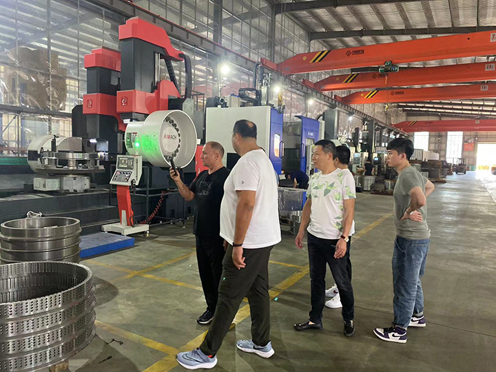 近日,來自海外的客戶應邀到漢馬大圓機生產車間進行實地考察,公司負責人高海彬、王偉明等人熱情接待遠道而來的客人。