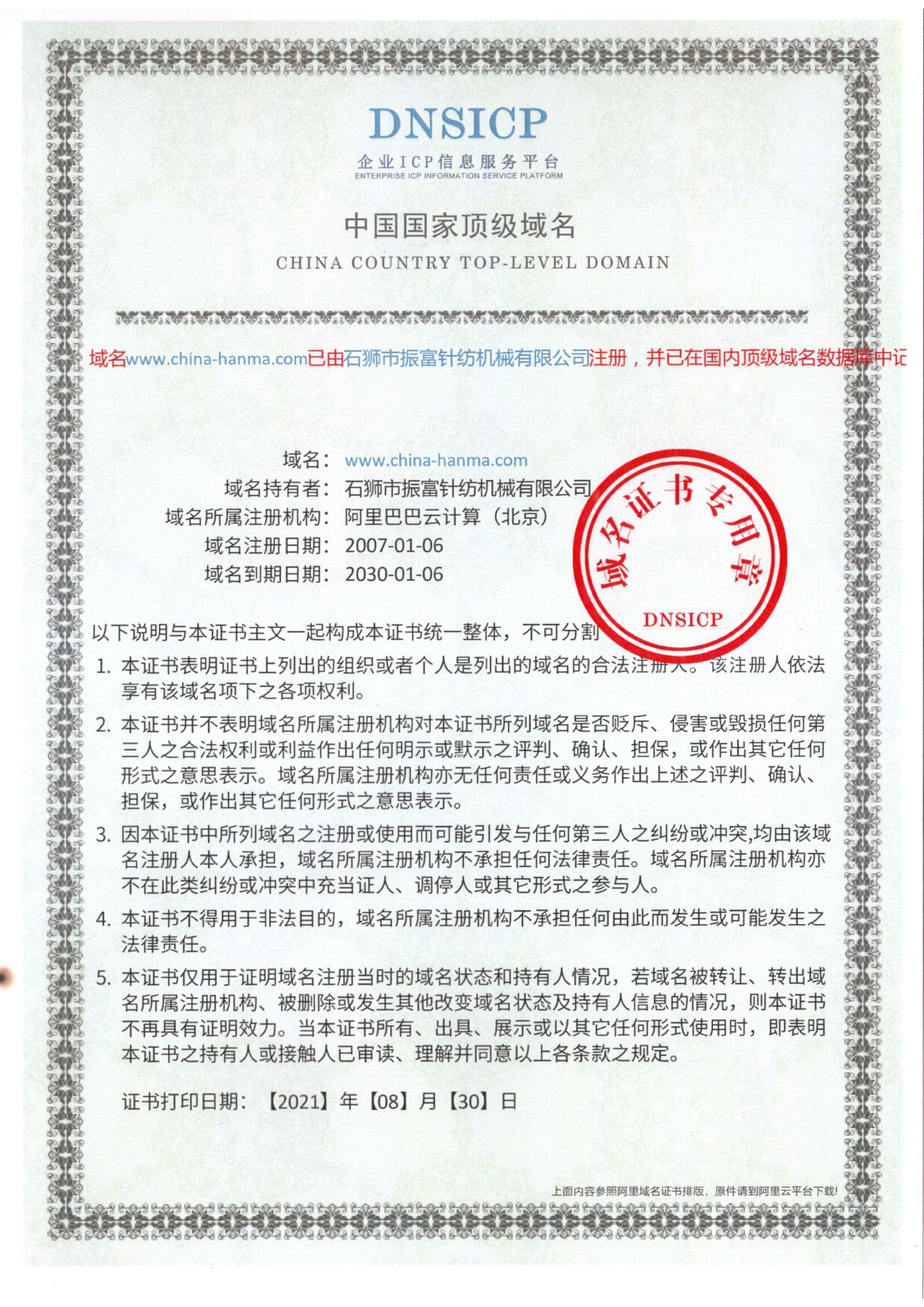 域名020towel.com.cn 已由石獅市振富針紡機械有限公司注冊,並已在國內頂級域名數據庫中記錄
