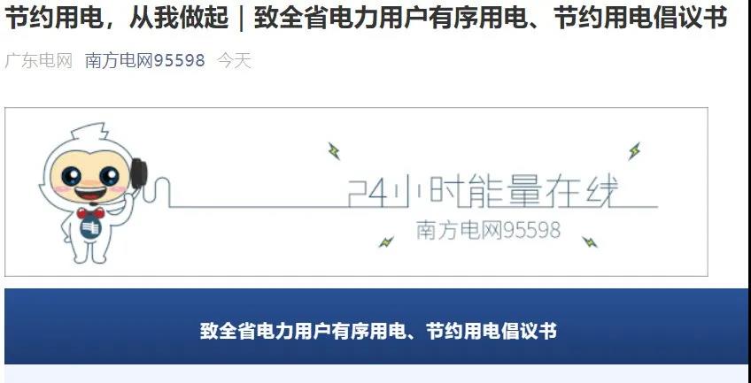 9月26日,廣東省能源局和廣東電網有限責任公司聯合發布《致全省電力用戶有序用電、節約用電倡議書》。倡議全省工、商業企業