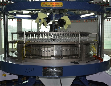 普通單麵針織大圓機就是成圈路數多(通常是針筒直徑的3~4倍,即3路∕25.4mm~4路∕25.4mm),如30″的單麵機具有90F~120F,34″的單麵機具有102~126F路等,轉速高,產量高。在我國部分針織企業稱為多三角機(主要以Z241型興起的)。