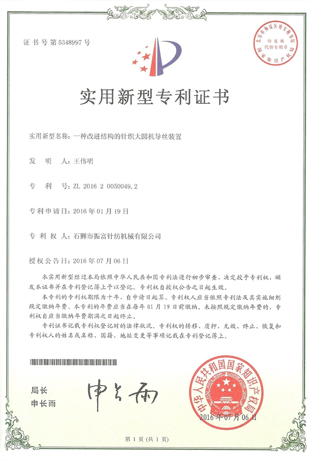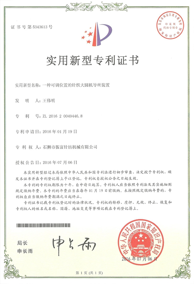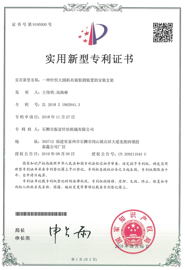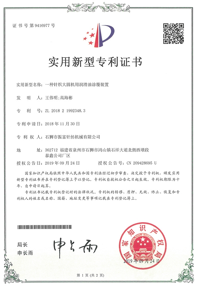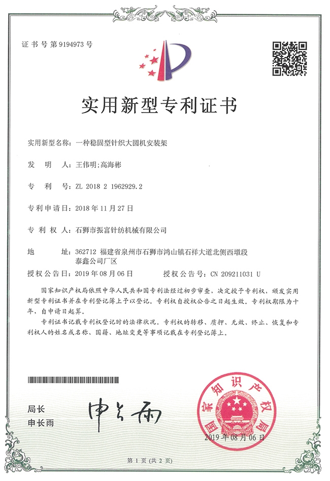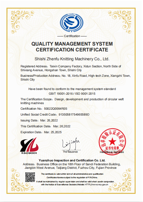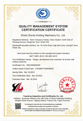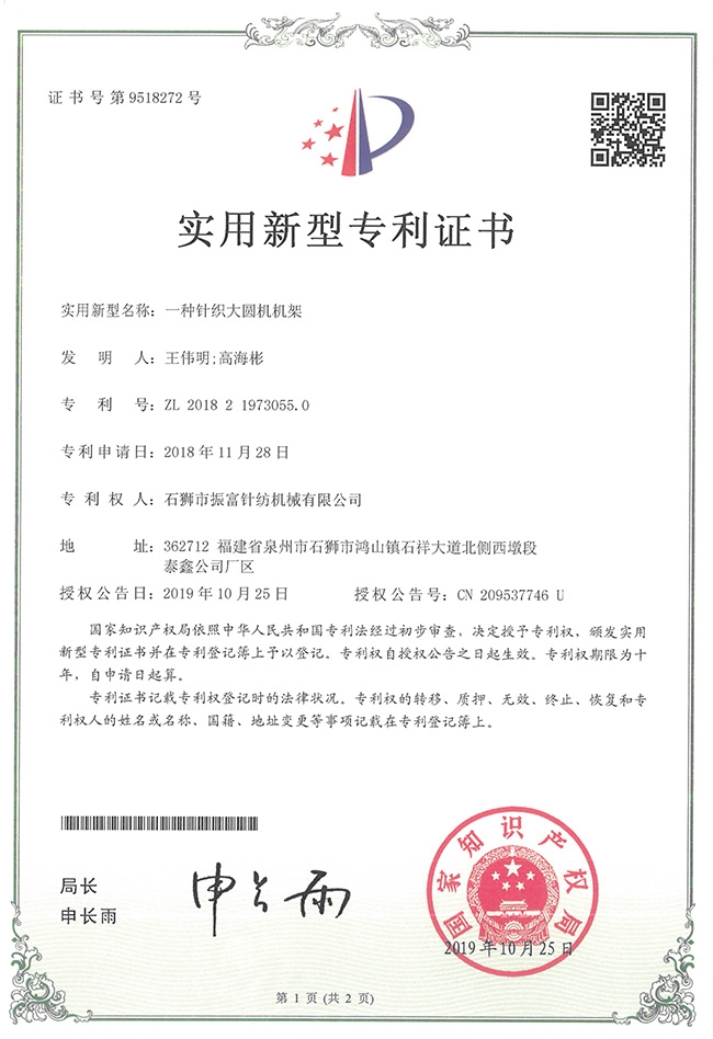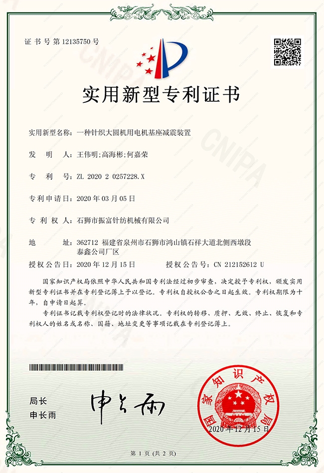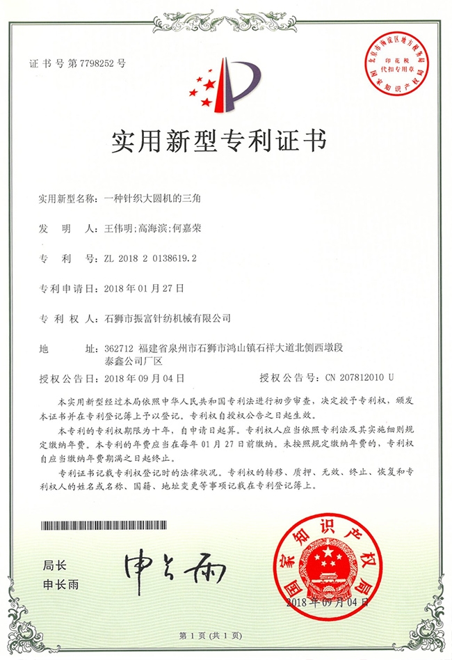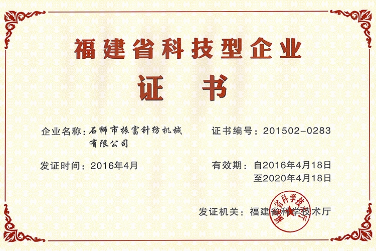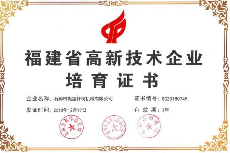 石獅市振富針紡機械有限公司成立於2003年11月03日ri,專zhuan業ye從cong事shi緯wei編bian針zhen織zhi大da圓yuan機ji設she計ji及ji製zhi造zao的de研yan發fa型xing公gong司si,企qi業ye具ju備bei雄xiong厚hou的de產chan品pin研yan發fa和he製zhi造zao能neng力li。自zi有you廠chang房fang並bing配pei備bei了le研yan發fa專zhuan用yong實shi驗yan室shi,每mei年nian研yan發fa投tou入ru數shu百bai萬wan元yuan,現xian有you發fa明ming專zhuan利li兩liang項xiang,實shi用yong新xin型xing專zhuan利li總zong計ji七qi十shi餘yu項xiang,真zhen正zheng實shi現xian研yan發fa與yu生sheng產chan相xiang結jie合he,將jiang技ji術shu成cheng果guo轉zhuan換huan並bing應ying用yong到dao實shi踐jian中zhong來lai;獲得“國家高新技術企業”、“科技小巨人領軍企業”、“省科技型中小企業”,“金牌設備供應商”等殊榮。