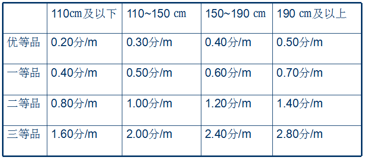●內在質量和外觀質量分別評等後,以最低的品等作為該匹布等級。