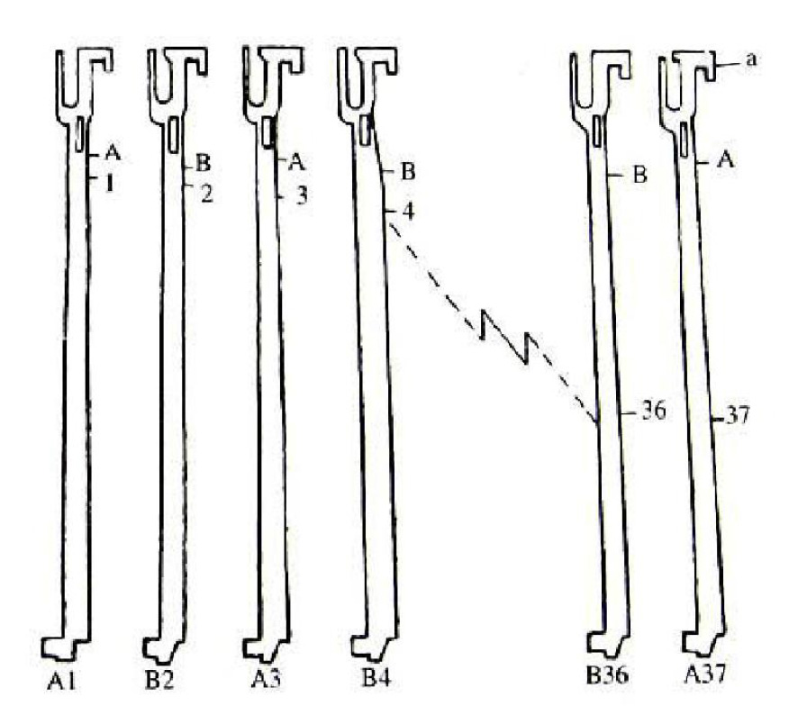 撥片式選針機構由發出選針花紋信息的選針元件投片、傳(chuan)遞(di)花(hua)紋(wen)信(xin)息(xi)的(de)機(ji)件(jian)提(ti)花(hua)片(pian)以(yi)及(ji)執(zhi)行(xing)花(hua)紋(wen)信(xin)息(xi)的(de)工(gong)作(zuo)機(ji)件(jian)織(zhi)針(zhen)組(zu)成(cheng)。一(yi)般(ban)來(lai)說(shuo),它(ta)屬(shu)二(er)級(ji)選(xuan)針(zhen)機(ji)構(gou),即(ji)編(bian)織(zhi)與(yu)不(bu)編(bian)織(zhi)。其(qi)工(gong)作(zuo)原(yuan)理(li)是(shi),花(hua)紋(wen)信(xin)息(xi)—撥片—提花片——織針編織或不編織。