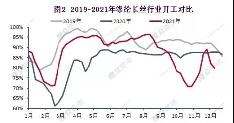 數據顯示,紹興圓機開工較上周已小幅下降,此外部分地區的噴水、經編行業開工也相應下降,上周化纖織造綜合開機率為56.37%,環比下降2.56%。近期疫情突發下,下遊部分工廠存提前放假預期,預計下周開機率仍有下行趨勢。