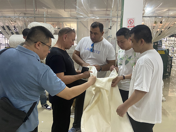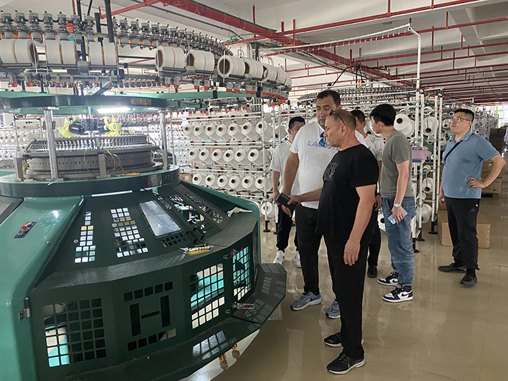 近日,來自海外的客戶應邀到漢馬大圓機生產車間進行實地考察,公司負責人高海彬、王偉明等人熱情接待遠道而來的客人。