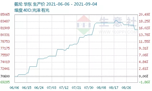 今年以來,紡織服裝原料幾乎是全線開啟上漲模式。棉紗、短纖等紡織原料價格一路上漲,氨綸價格更是比年初翻了好幾倍,目前價格高位震蕩,產品仍然供不應求。今年6月下旬以來,棉花開啟新一輪趨勢性上漲,至今累計漲幅超15%。