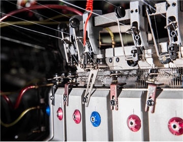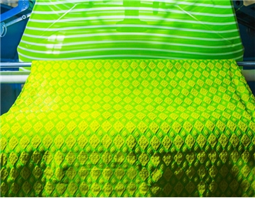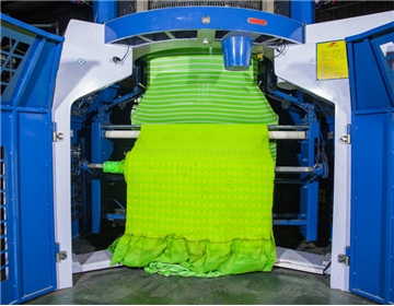 3、提花技術與移圈編織的結合,造就了生產方麵的優勢。