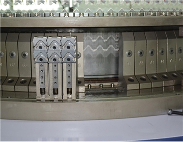 普通單麵針織大圓機具有單針道(一個跑道)、兩針道(兩個跑道)、三針道(三個跑道)、四(si)針(zhen)道(dao)以(yi)及(ji)六(liu)針(zhen)道(dao)機(ji)型(xing),現(xian)有(you)在(zai)針(zhen)織(zhi)企(qi)業(ye)中(zhong)大(da)多(duo)使(shi)用(yong)的(de)是(shi)四(si)針(zhen)道(dao)單(dan)麵(mian)大(da)圓(yuan)機(ji)。它(ta)是(shi)利(li)用(yong)織(zhi)針(zhen)和(he)三(san)角(jiao)的(de)有(you)機(ji)排(pai)列(lie)組(zu)合(he)來(lai)編(bian)織(zhi)各(ge)種(zhong)新(xin)型(xing)麵(mian)料(liao)的(de)。